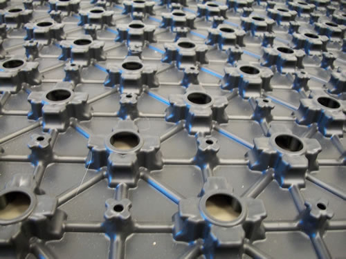1 mm kalınlığında PST termoform malzemeden üretilmiş, boru sabitleme için tasarlanmış plaka. Panelde, 10 mm çapındaki boruların 50 mm çoklu (düz döşeme) veya 70 mm çoklu (diyagonal döşeme) aralıklarda sabitlenebilmesini sağlayan, ters alttan kavrayışlı kabartılar mevcuttur. Her kabartıda açılan delikler ve alt kısımda oluklar sayesinde şap, hem panel içine hem de alt döşemeyle bütünleşecek şekilde yayılabilir. Alt yüzey, zemine tutunmayı kolaylaştırmak üzere yapışkanlıdır. Faydalı döşeme boyutu 1000 x 600 mm, toplam yüksekliği 16 mm’dir.