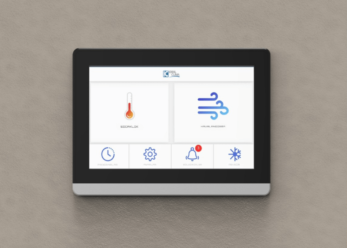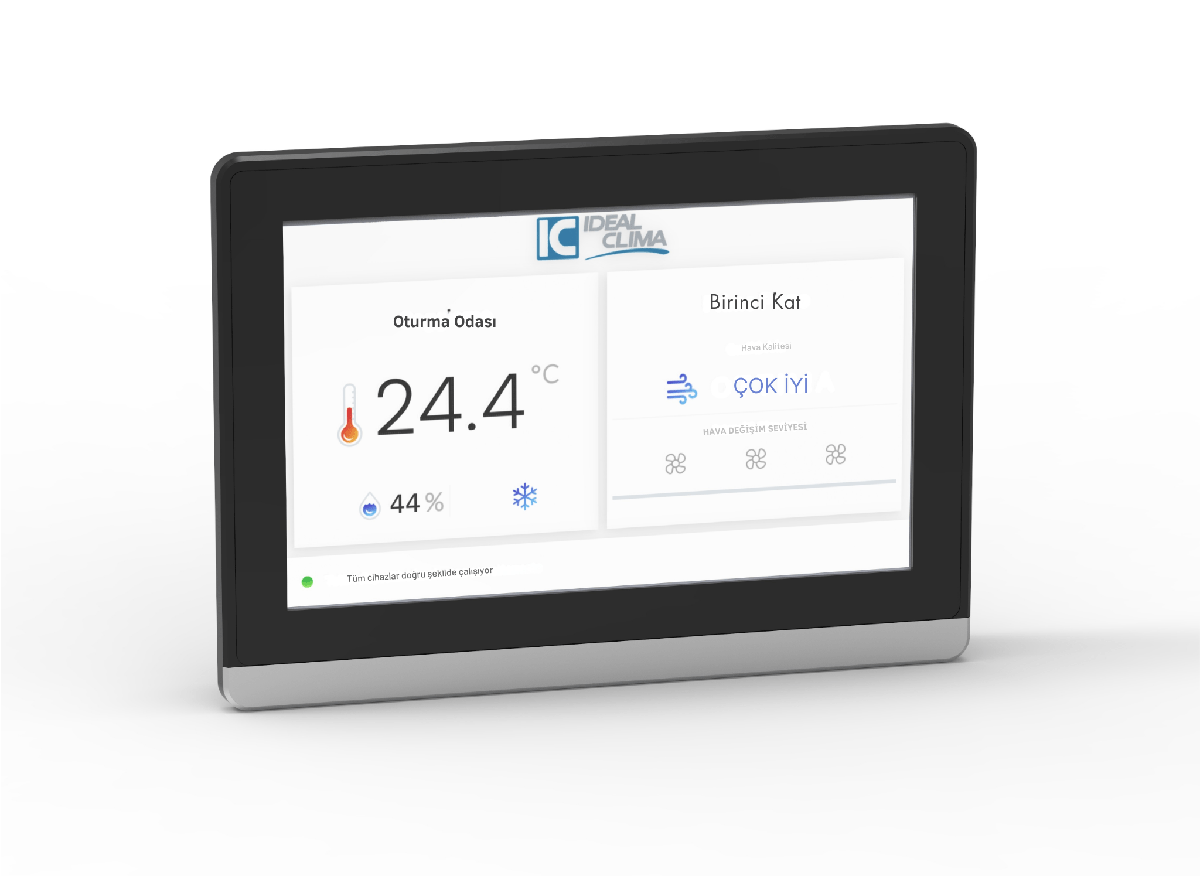 Integra Dokunmatik Ekran, duvara monte edilmek üzere tasarlanmış, Modbus protokolü aracılığıyla Integra ailesine ait kontrol ünitelerine bağlanabilen bir cihazdır. Radyant ısıtma ve/veya mekanik havalandırma sistemlerini kolay ve sezgisel bir şekilde kontrol etmeye olanak tanır.