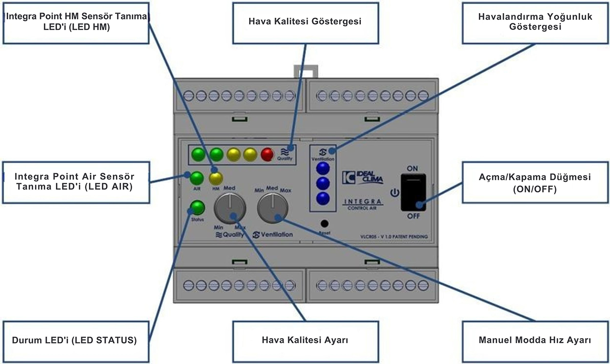 - Üzerinde veya Modbus üzerinden kontrol edilebilen hava kalitesi seçici