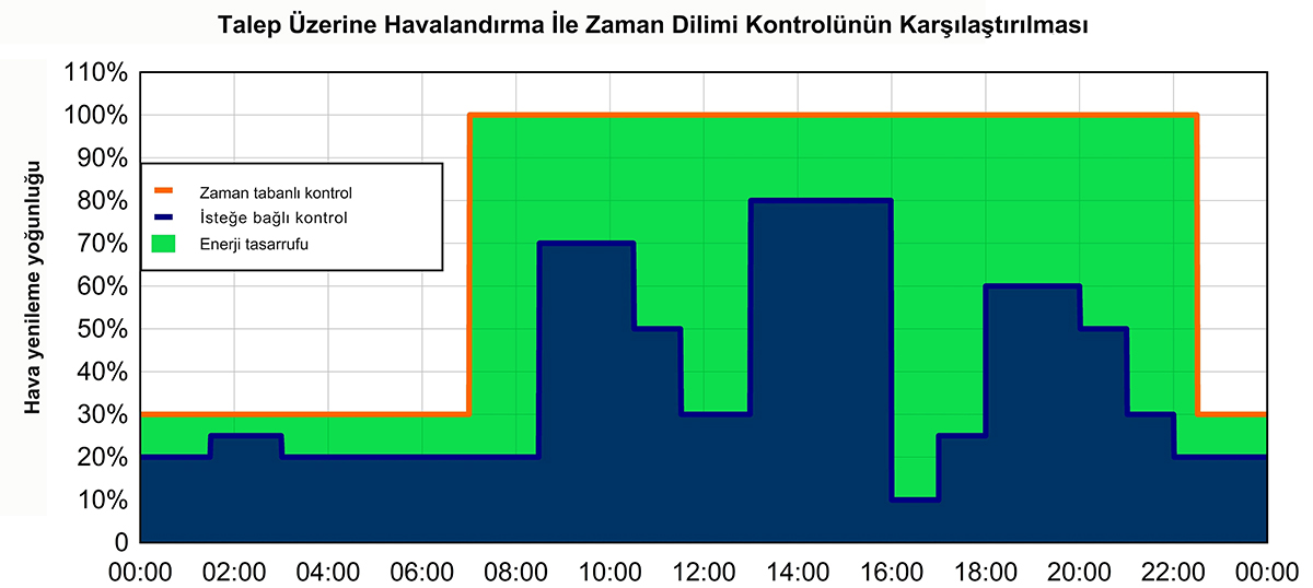 - Talep odaklı havalandırma kontrolü ve sürekli izleme